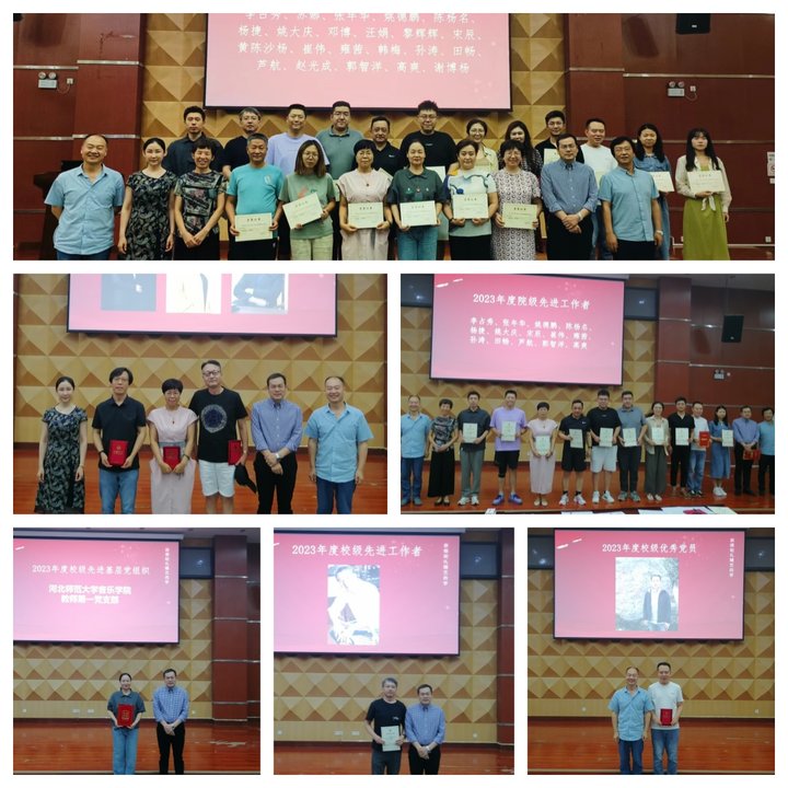 会上,学院领导班子成员依次为2023年度先进基层党组织,校级和院级优秀党员以及校级、院级先进工作者,师德师风考核优秀教师颁发获奖证书并合影留念。