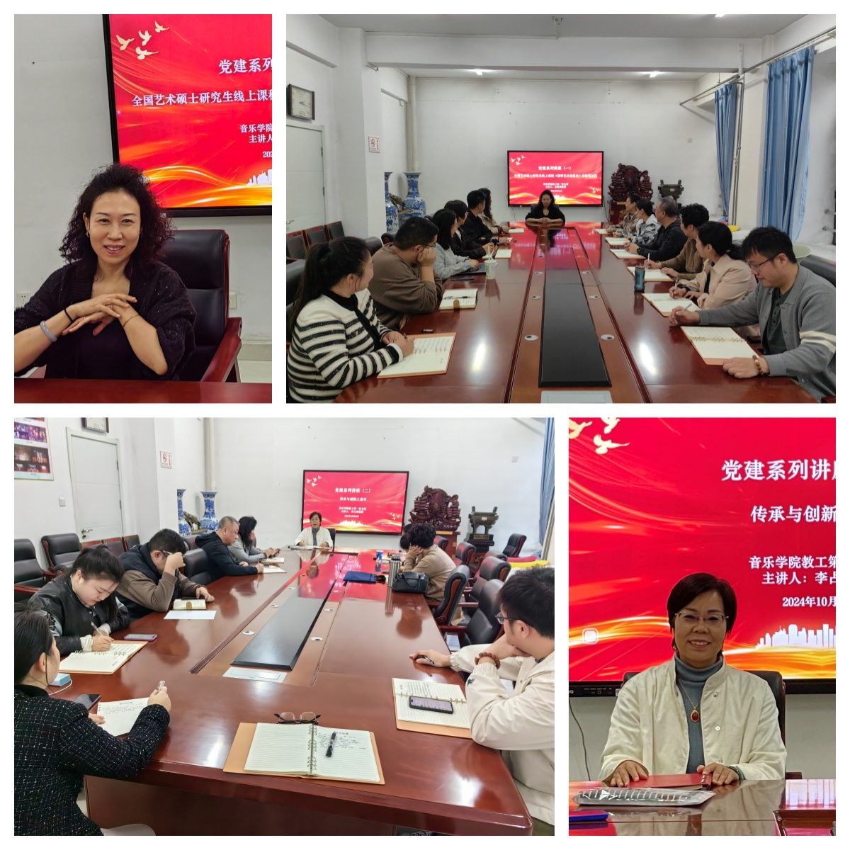 10月17日,党支部以“全国艺术硕士研究生线上课程《钢琴艺术发展史》的建设过程”为主题的“之悟讲堂”第一讲开讲。支部党员教师金辉副教授结合录制《钢琴艺术发展史》的全过程,分享了自己在学校和学院支持下开展全国艺术硕士专业学位研究生“在线示范课程”建设的宝贵经验。她向大家介绍了线上教学面临的挑战与机遇,分享了如何通过网络平台有效地传授钢琴艺术知识,以及如何激发学生的学习兴趣和参与度。老师们就课程建设中相关问题进行热烈探讨,纷纷表示受益匪浅。