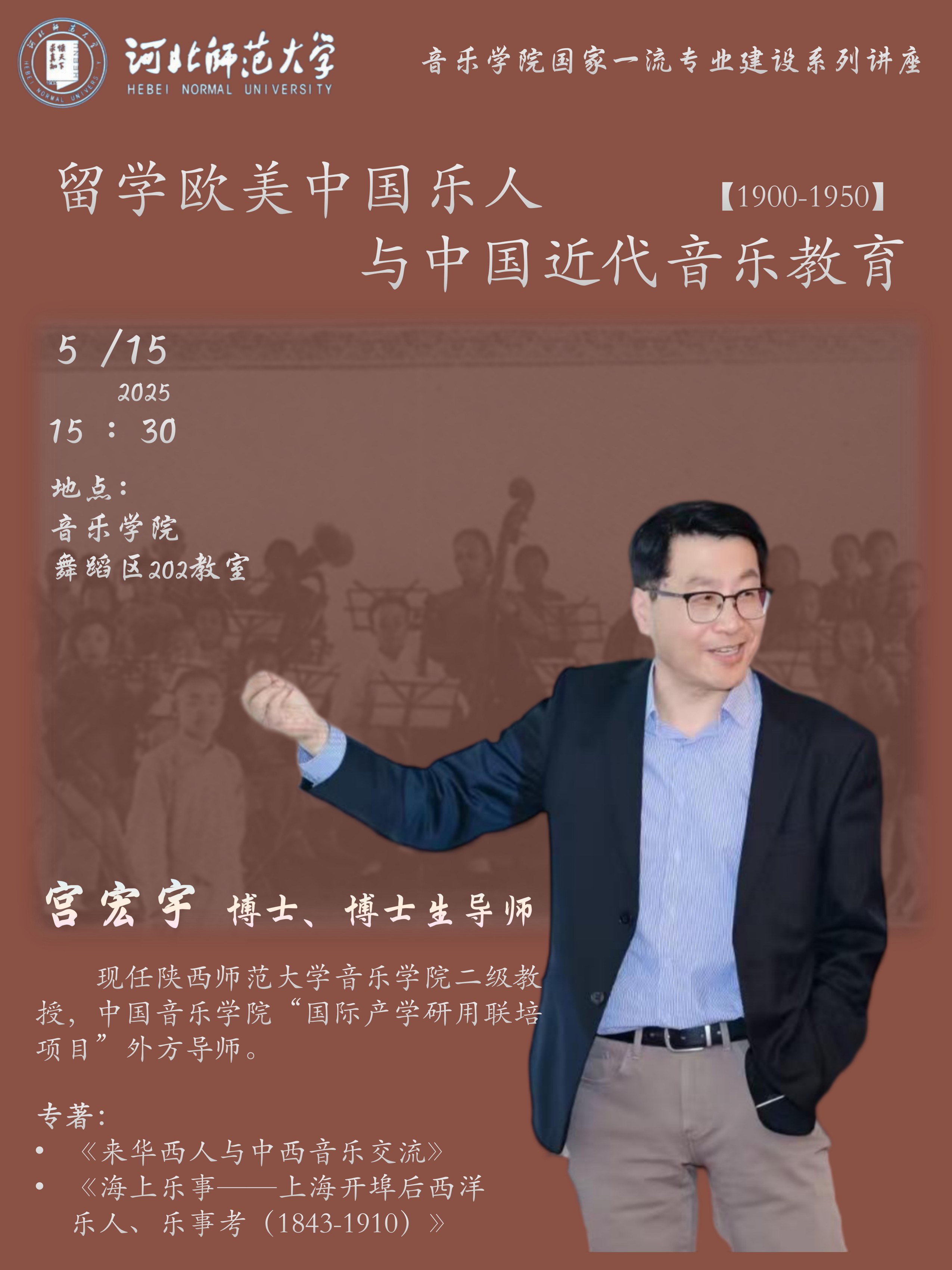讲座以1900至1950年间赴欧美专攻音乐的数位留学生为例,考察国人在欧洲和美国学习音乐的经历,以及他们学成归国后对中国现代专业音乐教育上所做出的贡献。资料以保存在欧美各大学档案馆的早期留美学生所就学各学校官方记录,以及各学校公开发表的期刊历年来对留美学生的名录统计为依据。